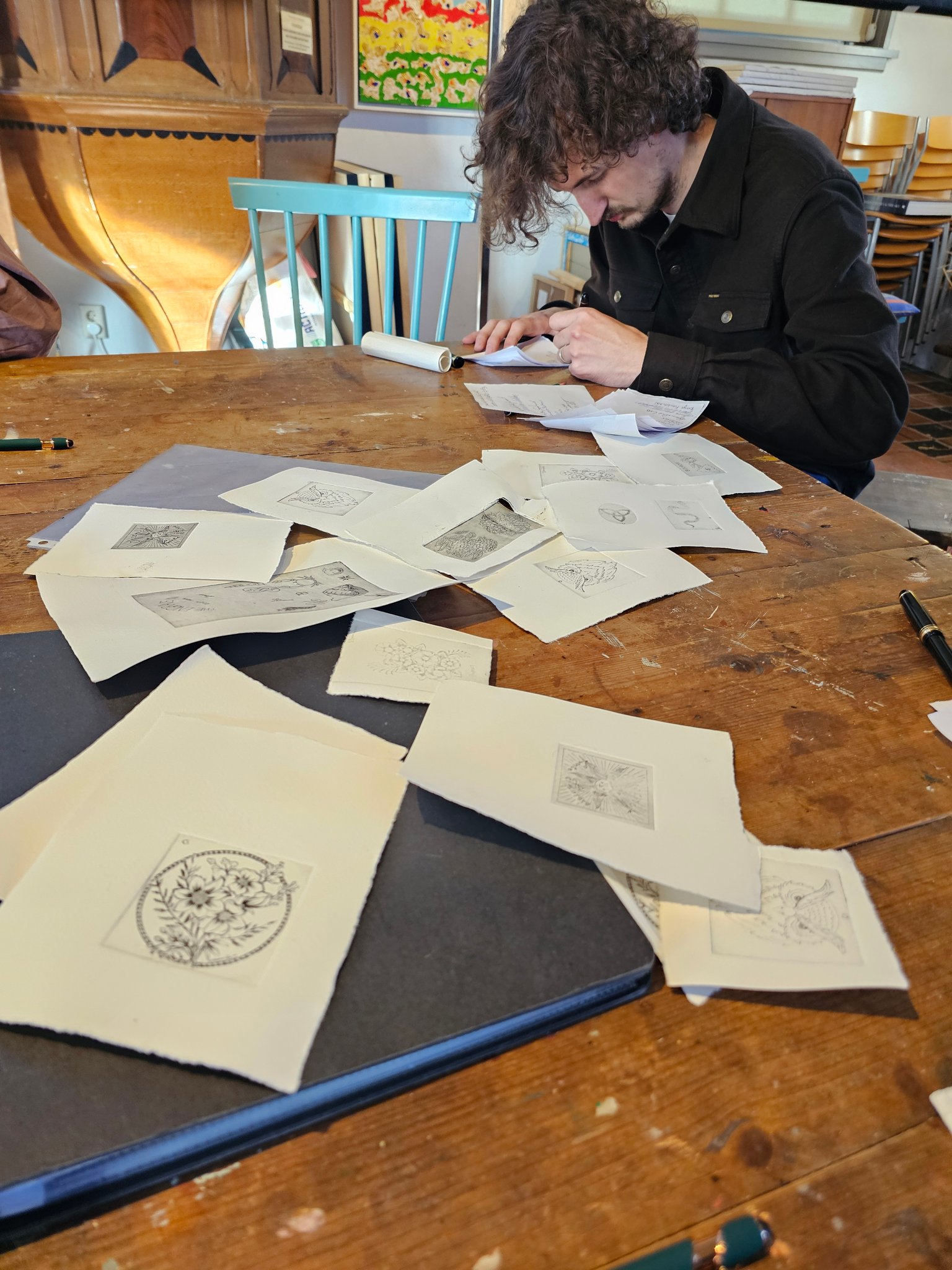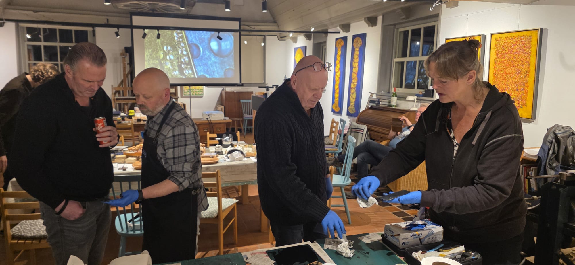 A wide exchange of knowledge took place, from traditional burin and hammer-and-chisel techniques to Japanese chisels and modern Swedish-American electric engraving technology. Check out the video below, or click the link to watch!''