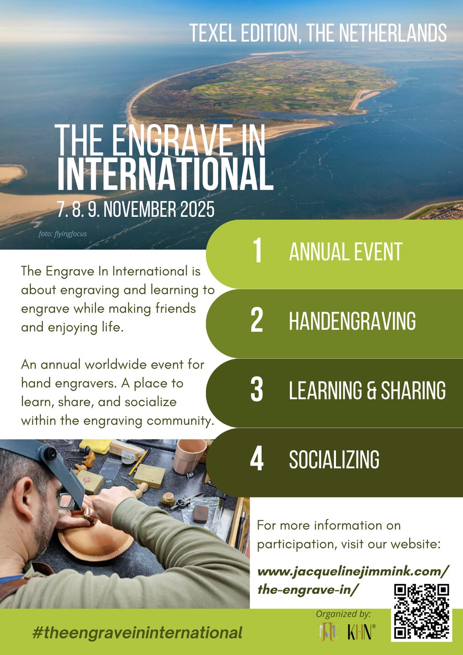 From this 20th annual 2025 edition on the event will continue worldwide, including outside the USA, and will be called The Engrave In International. In 2025, the 20th annual edition in Monteagle, TN, USA, took place from September 12th to 14th. The 1st international edition in new format will take place on Texel (The Netherlands).