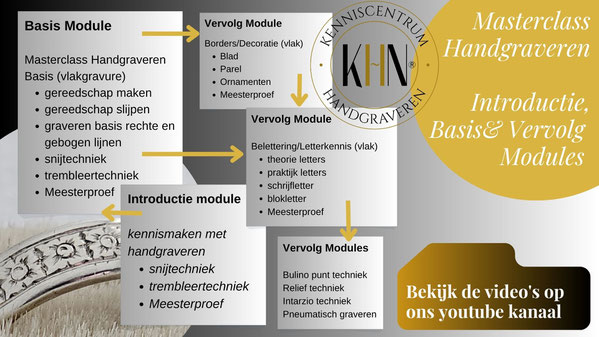 KHN® biedt diverse professionele introductie-, vervolg- en themamodules en volwaardig vakopleiding Handgraveren. Hiernaast een overzicht van enkele opties.